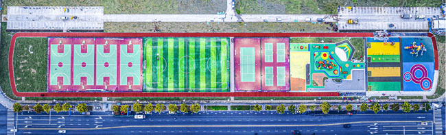 該項(xiàng)目所處位置原為一處待開發(fā)地塊,園區(qū)根據(jù)居民需求規(guī)劃建設(shè)健身跑道、全齡段健身區(qū)、綜合兒童活動(dòng)區(qū)、平地輪滑場(chǎng)、廣場(chǎng)舞片區(qū)和各類球場(chǎng)(其中羽毛球四組、網(wǎng)球場(chǎng)一組,7人制籠式足球場(chǎng)一組、籠式籃球場(chǎng)四組),同步建設(shè)公廁、停車場(chǎng)等配套設(shè)施。
