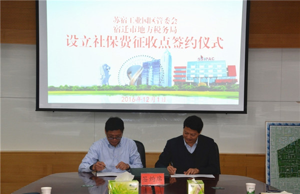 12月1日下午,園區(qū)管委會與宿遷市地稅局舉行設立社保費征收點簽約儀式。副市長、園區(qū)黨工委書記、管委會主任方文浜,市地稅局局長王月明,園區(qū)工委領導戈亮、高揚出席簽約儀式。
